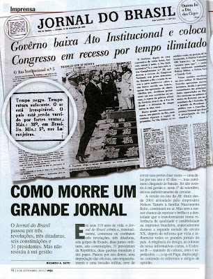Na edição de 8 de setembro, a revista Veja publicou um artigo de 2 páginas lamentando a "morte" do Jornal do Brasil. Em destaque, um dos momentos áureos do jornal: a página que noticiou o AI-5, recheada de mensagens subliminares para driblar a censura.